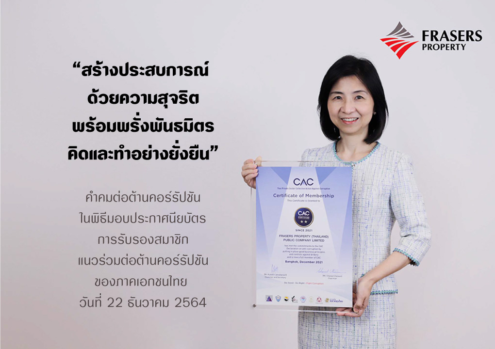 The company has been certified as a member of the Thai Private Sector Collective Action Against Corruption (CAC) since 2017, with its Anti-Corruption Practices continuously certified.